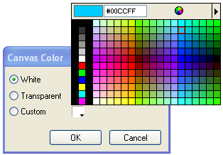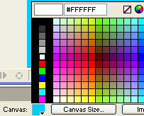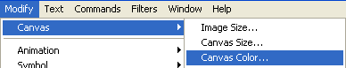 Fireworks makes it easy to change to the canvas size and canvas color.