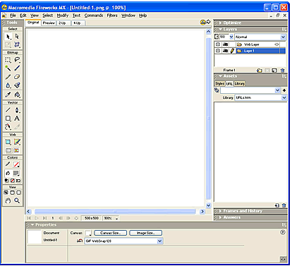 document in Fireworks MX for the first time, the work environment is activated,